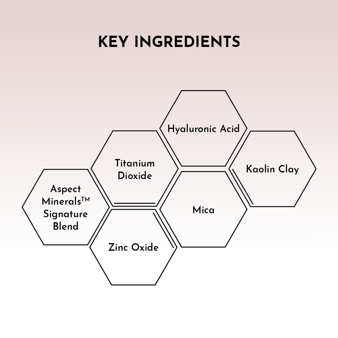 - Earth-Derived Mineral Blend: An ultra-fine blend of Zinc Oxide, Titanium Dioxide and Mica that help to protect the skin from external free radicals.